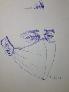 Szájmaszk felett hunyorgó, szándékom szerint pajkos mosolyú szememből próbálja megfejteni ennek a számára értelmetlen megállapításnak a rá vonatkozó értelmét.